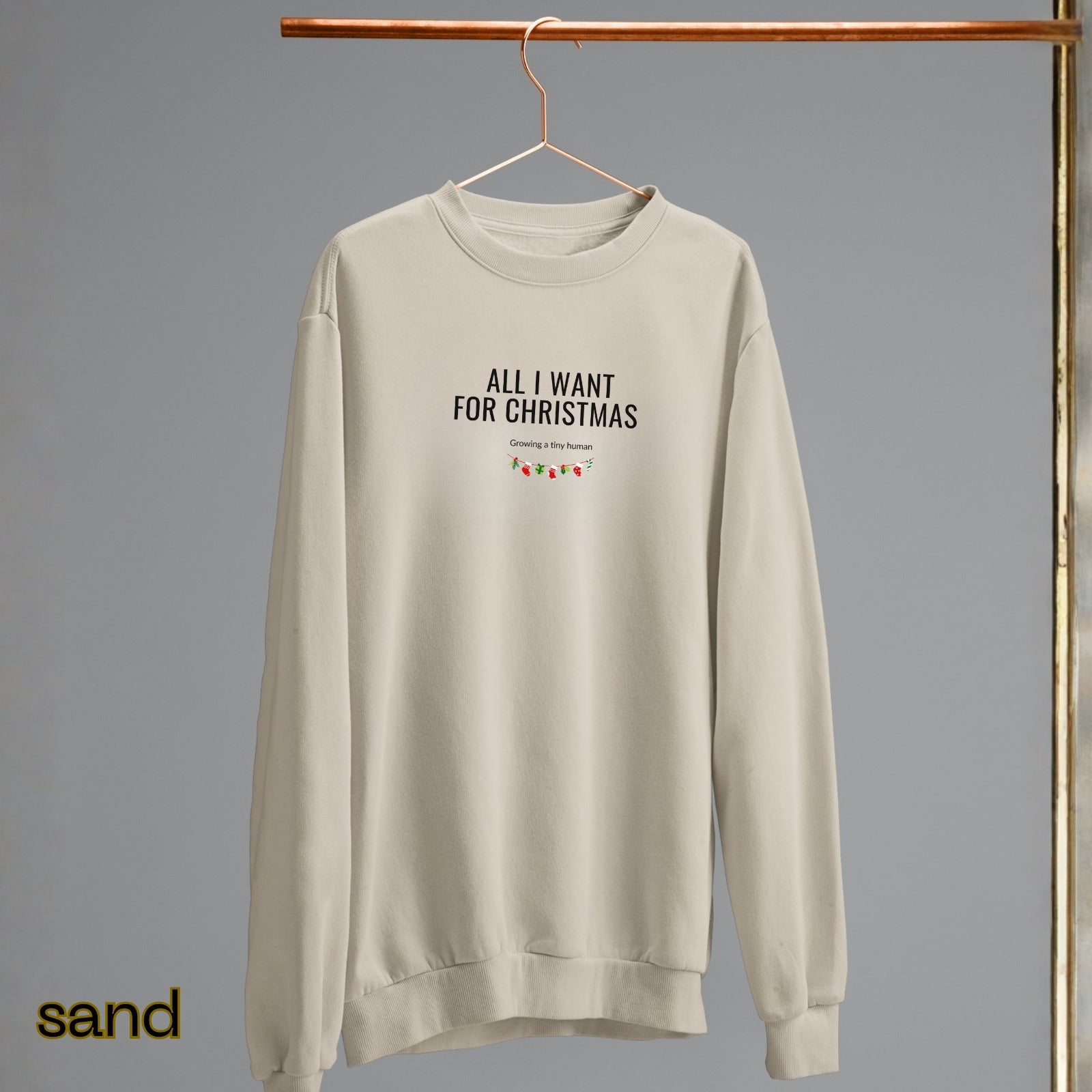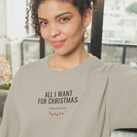 Stay cozy and stylish during the holiday season with this funny pregnancy top "All I Want for Christmas, Growing a Tiny Human". Perfect for expecting mothers to proudly show off their baby bump. Ideal for baby showers and pregnancy reveals, this unisex sweatshirt is made from a comfortable cotton-polyester blend, ensuring durability and comfort. With a classic fit and crew neckline, it offers a clean-cut style and a comfy wearing experience. This Christmas sweatshirt is a great gift for expecting parents or a special gift for your wife.