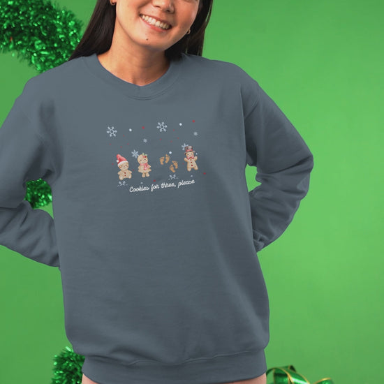 Cookies For Three Please Christmas Pregnancy Announcement Sweatshirt, Baby Reveal Sweater, Pregnancy Reveal Sweater