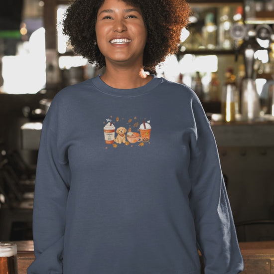 Fall Coffee Cute Sweatshirt, Fall Sweater, Pumpkin Spice Sweatshirt, Cute Dog Sweater, Women Fall Sweater, Coffee Sweatshirt, Gildan