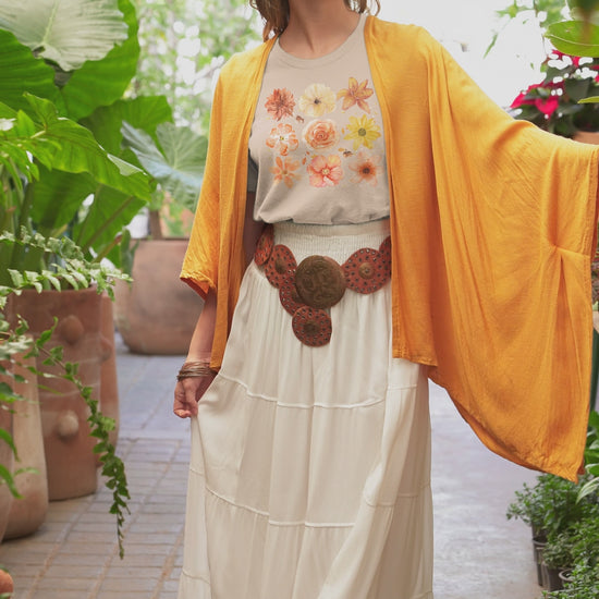 This flower aesthetic t-shirt captures the essence of fall season, perfect for Thanksgiving celebrations. The comfort colors and relaxed fit make it ideal for casual wear. Made of 100% cotton, this garment-dyed tee is soft and comfortable, available in multiple sizes from S to 4XL. Perfect for floral & aesthetic outfit, fall market trips, flower & plant-based fashion lovers, gardening enthusiasts and thoughtful fall gifts. A great addition to any autumn wardrobe.