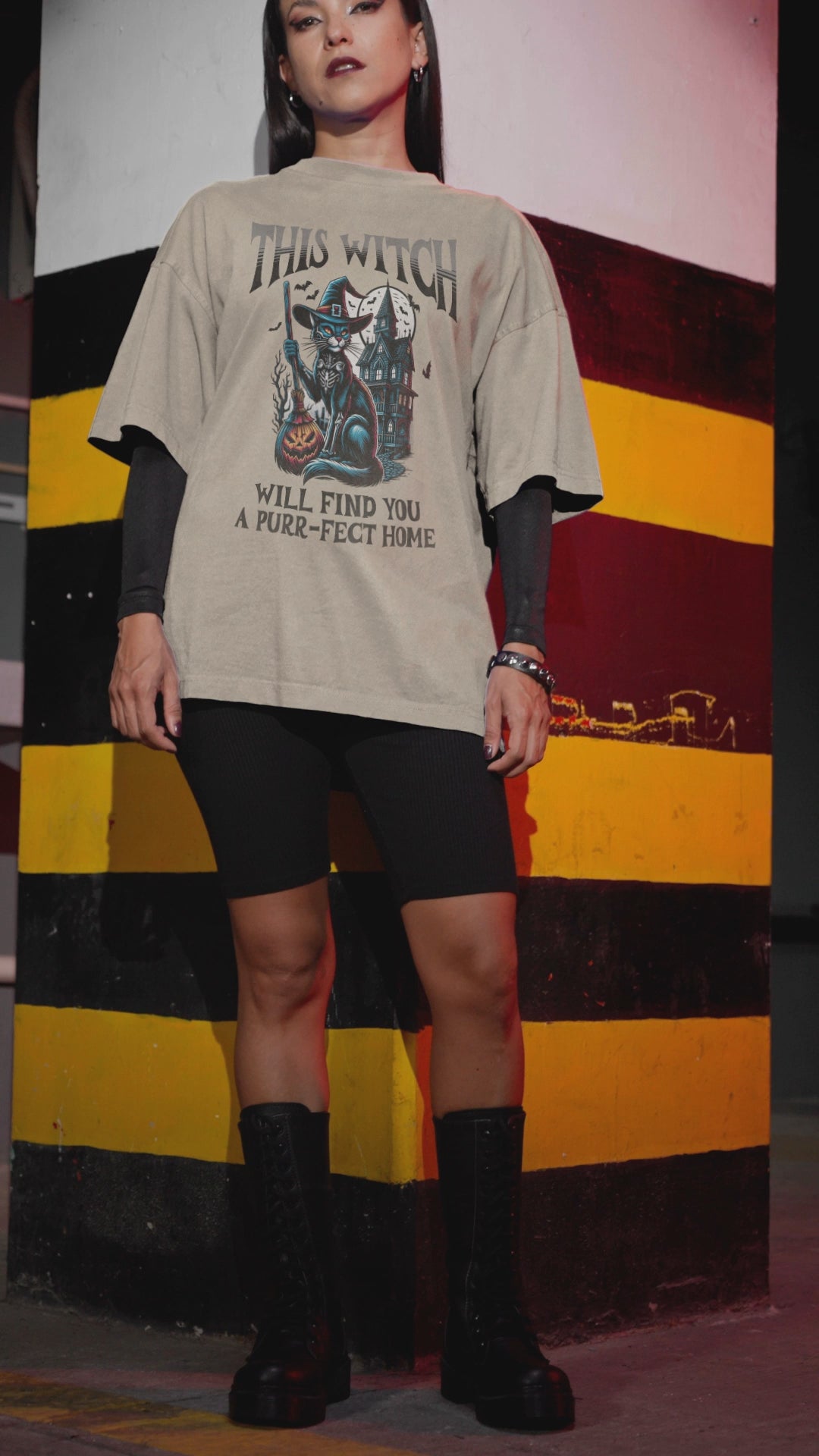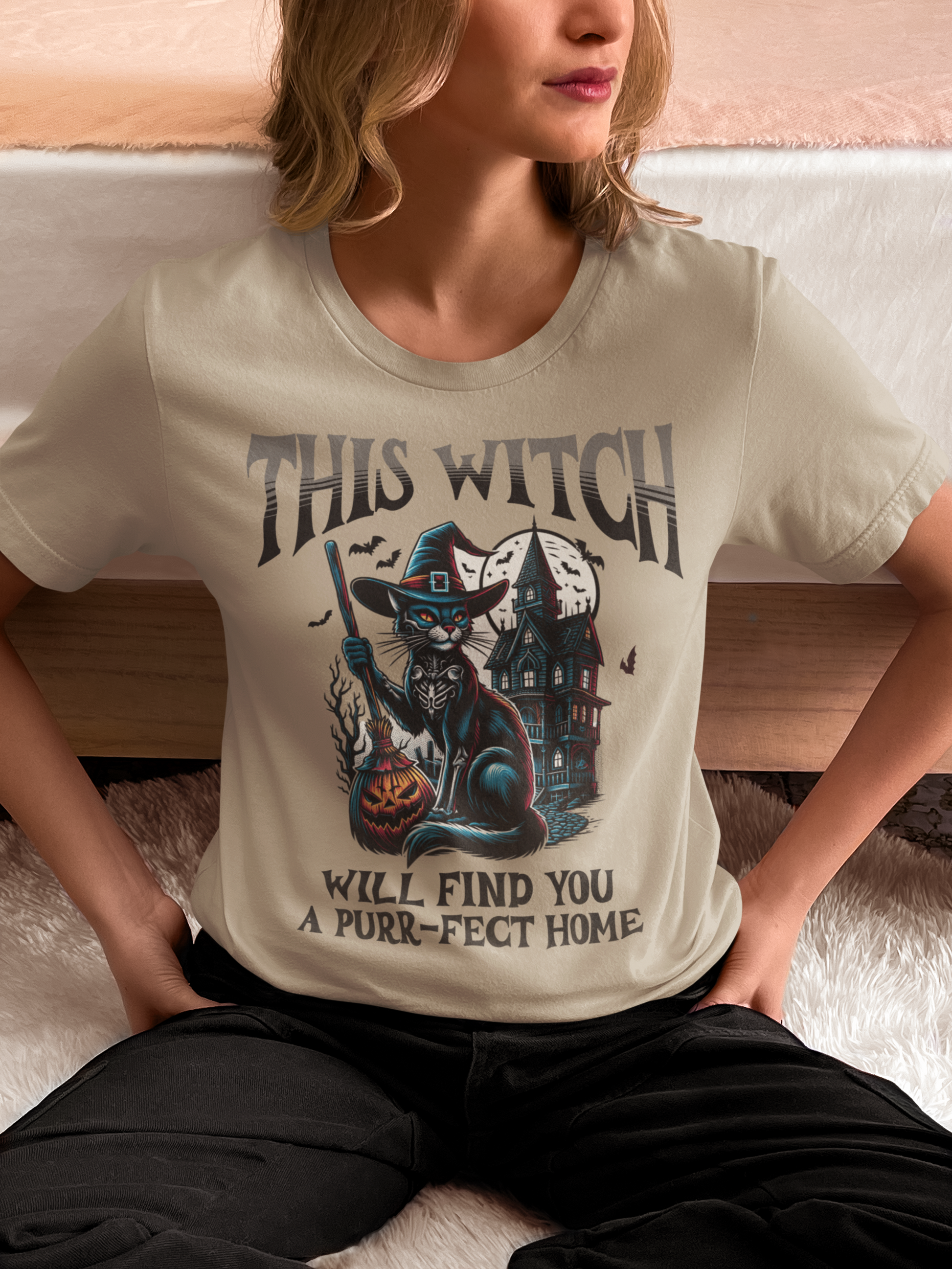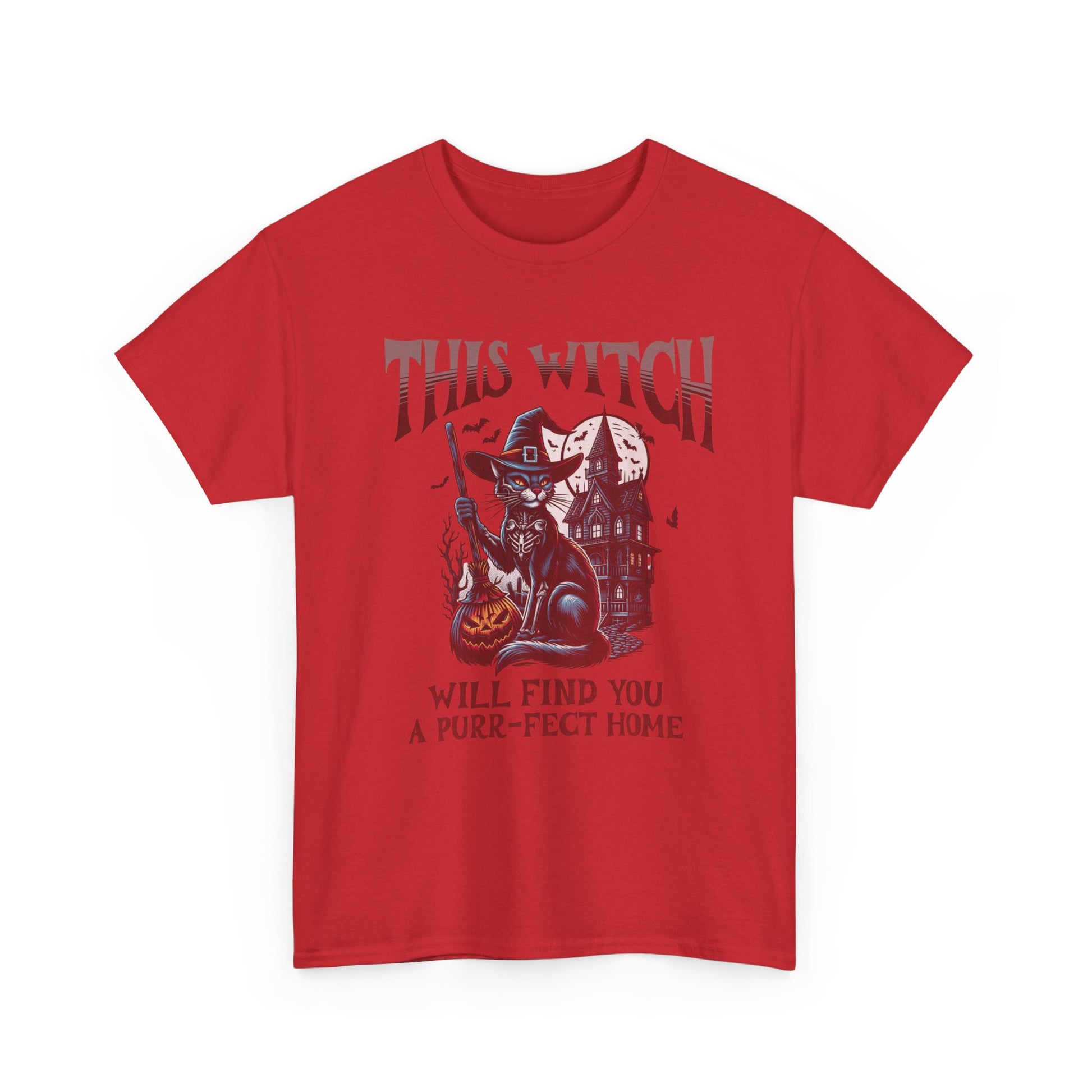 Halloween Realtor Tee, Funny Real Estate Agent T-Shirt, Cat Witch Shirt, Gift for Men Women, Unisex Heavy Cotton Top, Witchy Real Estate