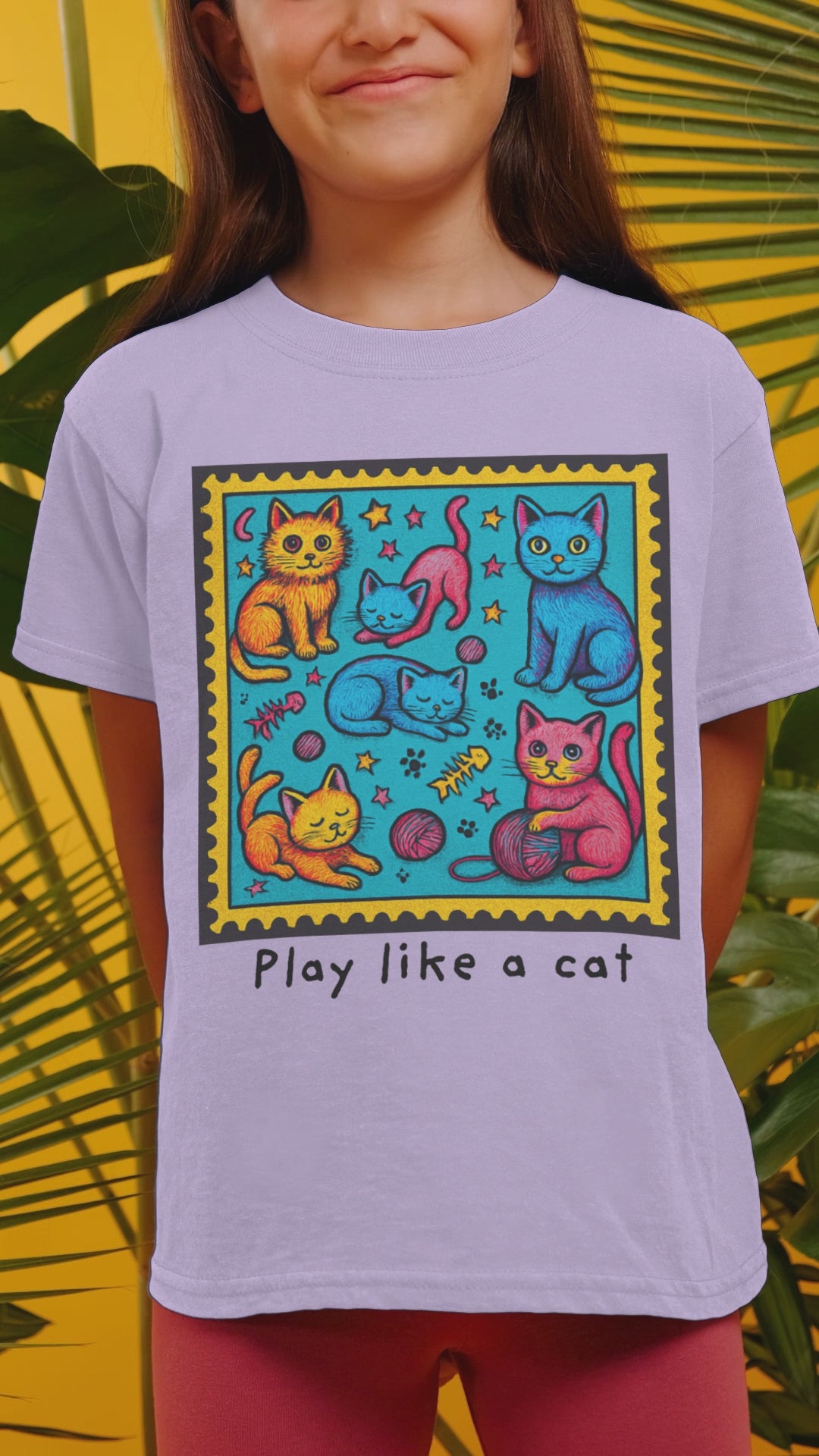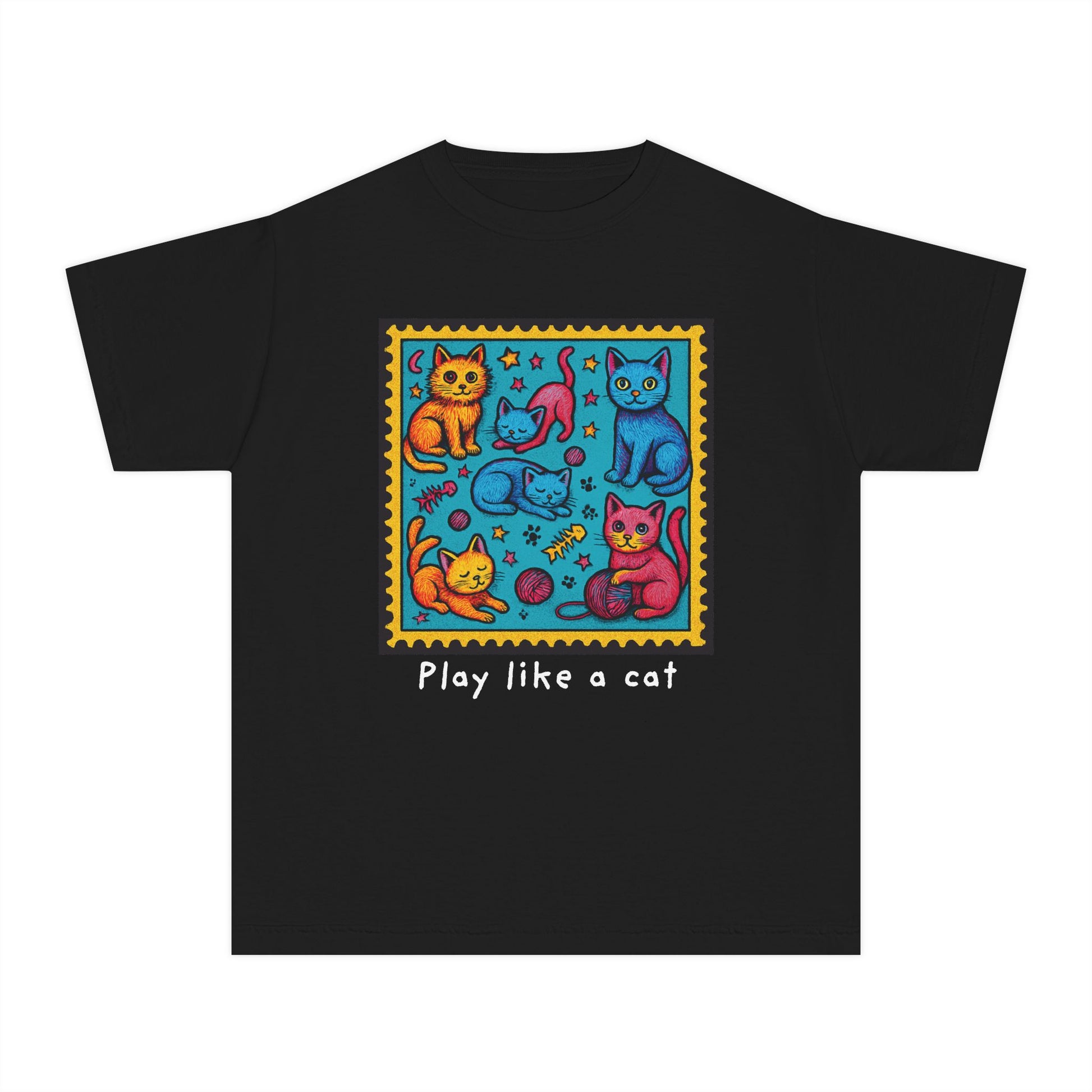 Play Like A Cat Pop Art Style Youth Tee, Comfort Colors T-Shirt for Kids, Cat Lover Gift, Graphic Print Shirt, Kitty Theme Clothing