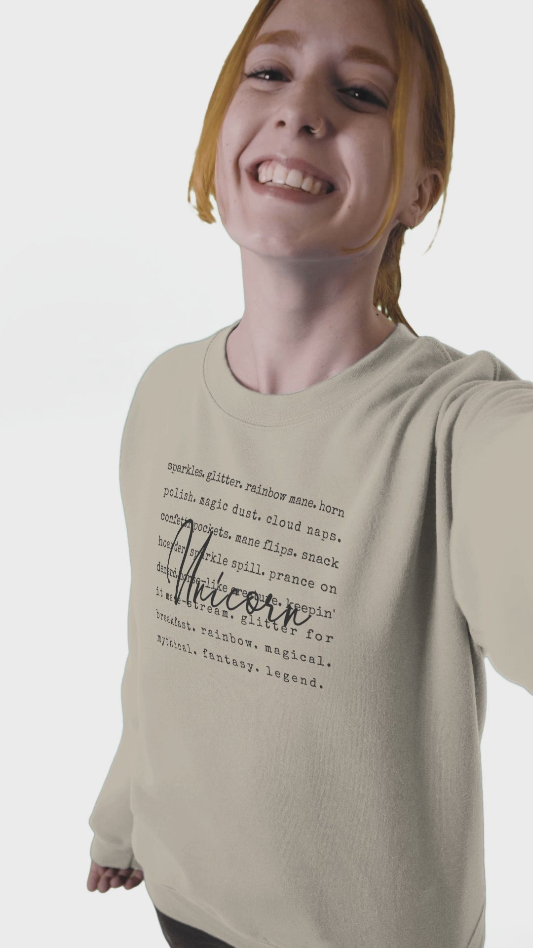 This cozy fall sweatshirt features a unicorn definition design, perfect for the holiday season or as a gift for a loved one. Made with a medium-heavy fabric blend of 50% cotton and 50% polyester, it provides warmth and comfort during colder months. The classic fit and crew neckline offer a comfy and stylish look, while the double-needle stitching ensures durability. Say goodbye to itchiness with the tear-away label. Ideal for adults looking for a trendy fall tee with thankful vibes. Product features - Cozy fall sweatshirt with unicorn design - 50% cotton and 50% polyester medium-heavy fabric blend - Classic fit with crew neckline for comfort - Double-needle stitching for durability - Tear-away label for itch-free wear Care instructions - Machine wash: cold (max 30C or 90F) - Non-chlorine: bleach as needed - Tumble dry: low heat - Do not iron - Do not dryclean